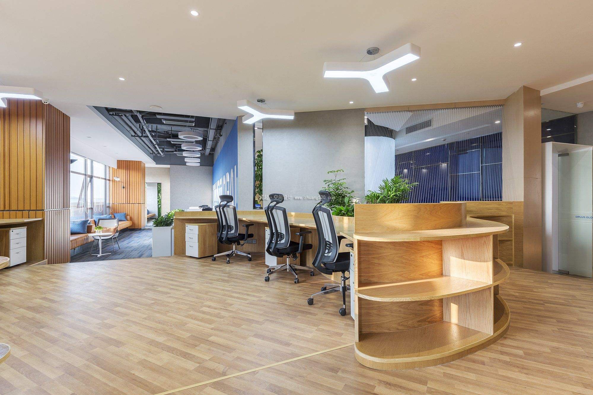 辦公空間的聲環境影響人們的情緒,長時間受噪音干擾容易疲勞,煩躁。在空間界面的吸聲處理上,辦公區地面宜采用塑膠等柔性材料,PVC彈性地板,吸音值達到28分貝,與方塊地毯媲美,吸音性能極大提升。